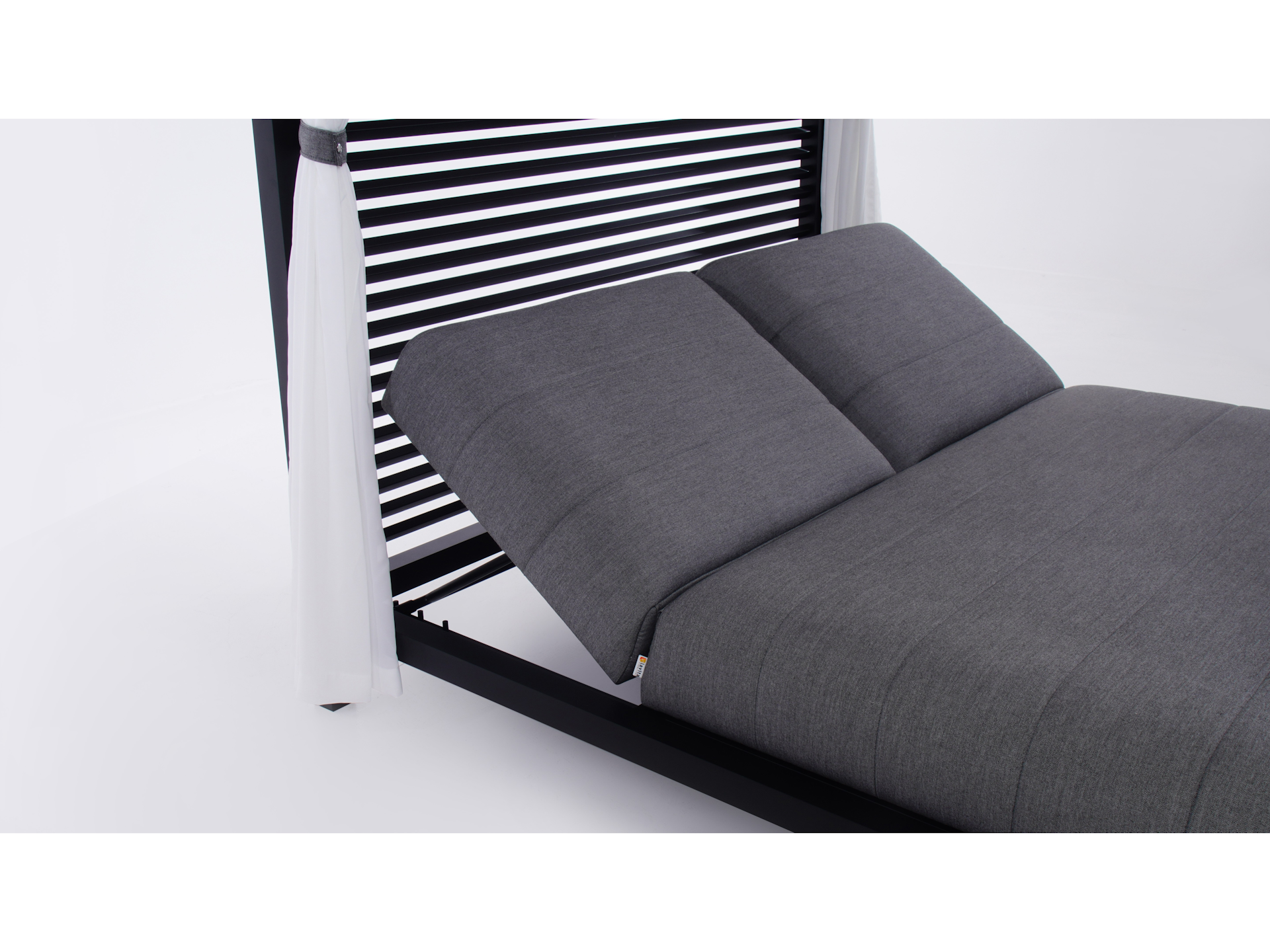 | Double sunbed upholstered in Sunbrella, featuring two separate adjustable backrests with three reclining positions each. | |